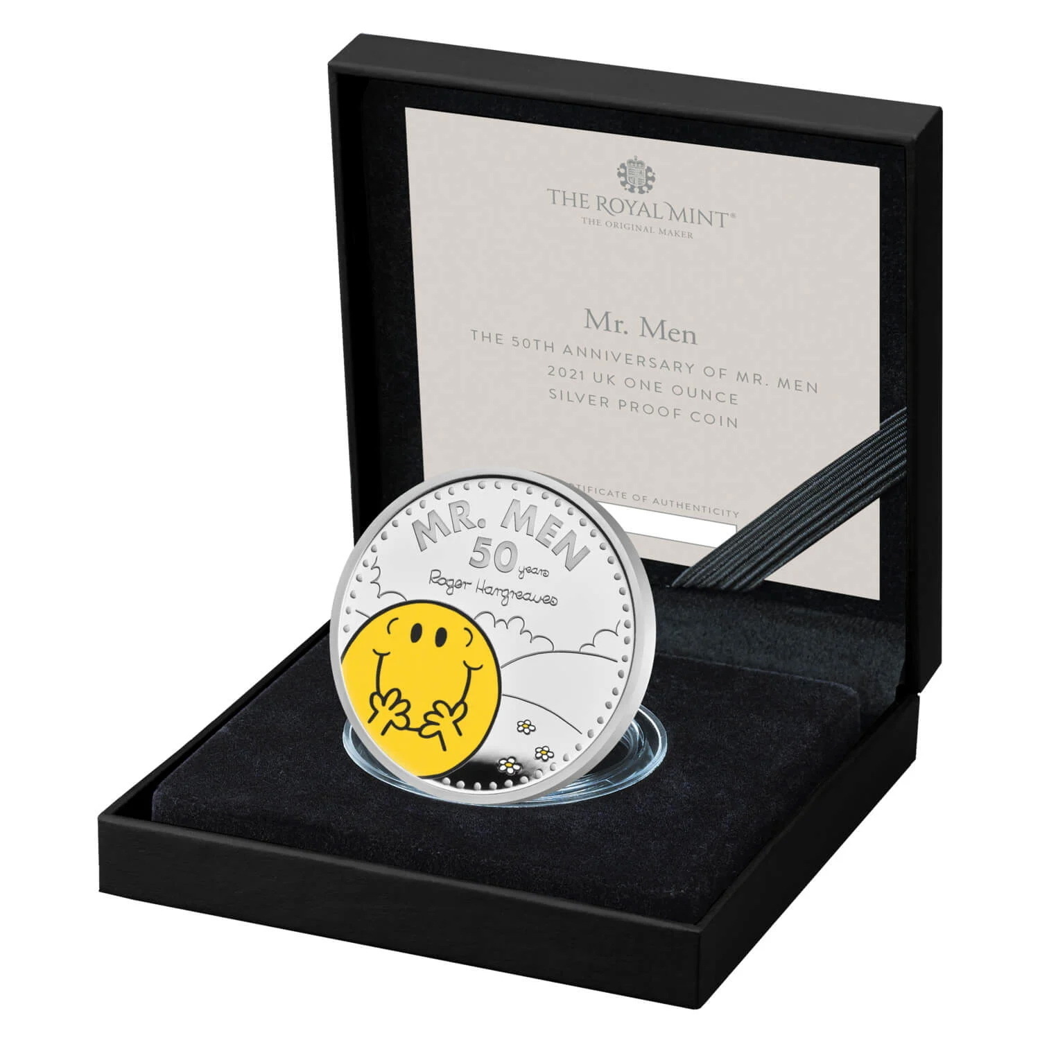 Mr. Happy – The 50th Anniversary of Mr. Men 2021 £2 1oz Silver Proof Colour Coin : 1oz .999 Silver : Limited Edition : The Royal Mint