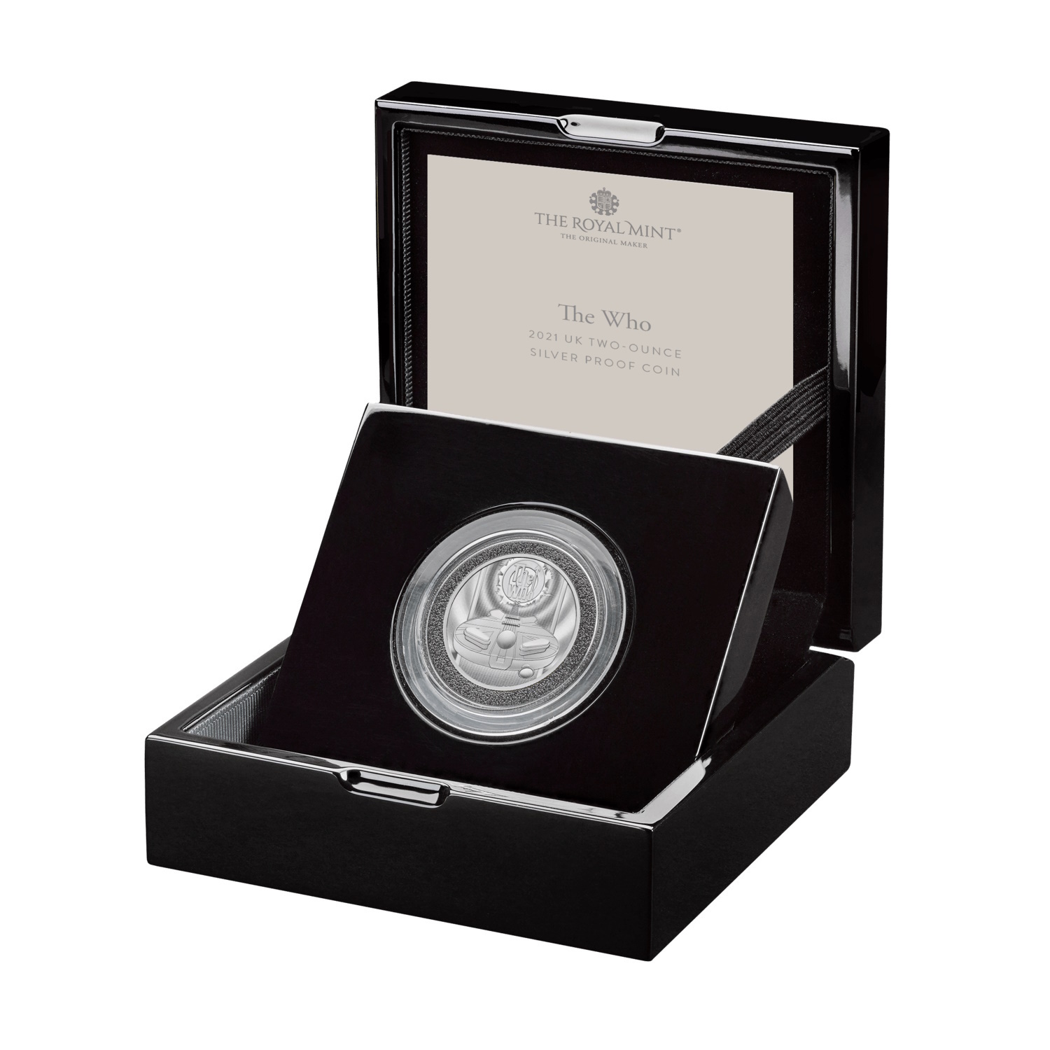 The Who 2021 £5 UK Two-Ounce Silver Proof Coin : 2oz .999 Silver : Limited Edition : The Royal Mint Limited Edition of only 550Comes in the original case and box with a numbered COA.